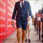 Unfortunately, he styled the jacket with tight-fitting shorts that reached his thighs. The bottoms were too casual and didn’t match his dark dress shoes.